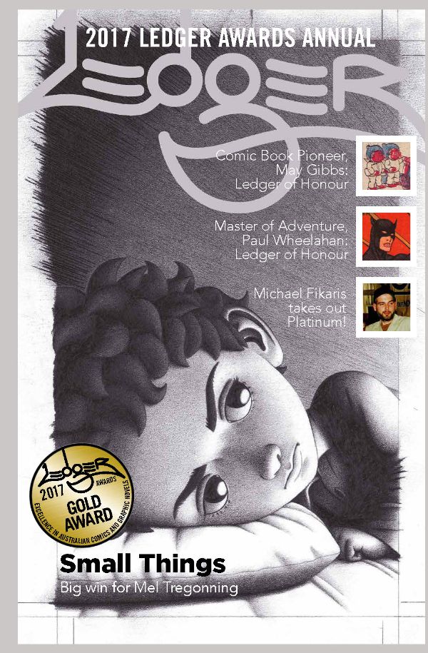 The Ledger Annual includes art and features on those comics which won awards – Gold,. Silver and Bronze Ledgers. Also has articles on Ledger of Honour recipients May Gibbs and Paul Wheelahan, Platinum Ledger recipient Michael Fikaris, Before the ledgers: OzCon Awards along with articles on the Ledgers and the judging process.