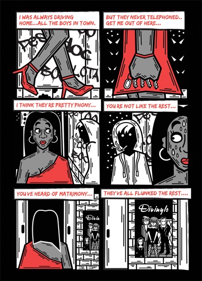 Part of the UK anthology Dead Singers Society IV published by Good Comics. A short tribute to the late Chrissy Amphlett from Divinyls, about a young woman in a rough town finding solace in music.