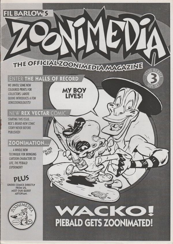 Zoonimedia 3 Zoonimedia | 1995 | Country of Publication: Australia Fil Barlow Details All Ages Comic Book, Magazine, Part of a numbered series Genre: Fantasy, Humour Edit Delete Entry created: July 5, 2020 at 5:24 pm | Updated: March 23, 2023 at 4:38 am